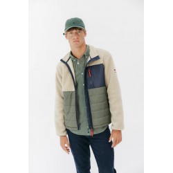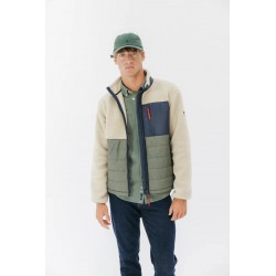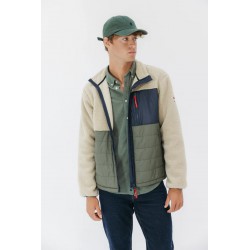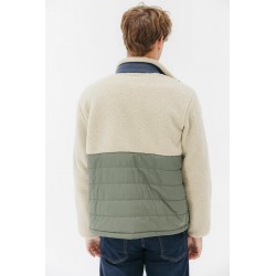 La chaqueta combinada Estonia de El Pulpo destaca por su original mezcla de materiales y colores: paneles de nylon verdes y azul marino en contraste con el borreguillo beige/crudo en mangas y parte superior. Su corte regular fit y puños elásticos ofrecen comodidad y estilo casual. Incluye bolsillo en el pecho con cremallera, bolsillos laterales y un interior cálido de forro polar y poliéster acolchado. Perfecta para un estilo náutico y urbano, manteniendo el toque tendencia y sofisticado típico de la marca El Pulpo.